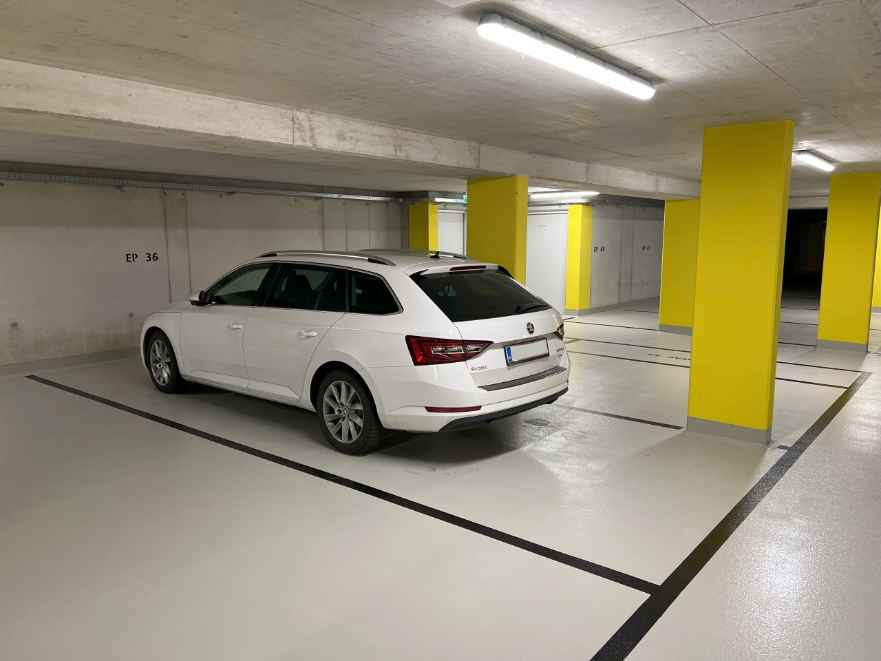 Frü einen Aufpreis von € 10.- pro Nacht ist ein sehr langer Tiefgaragenplatz, direkt in der Tiefgarage der Wohnung mietbar.