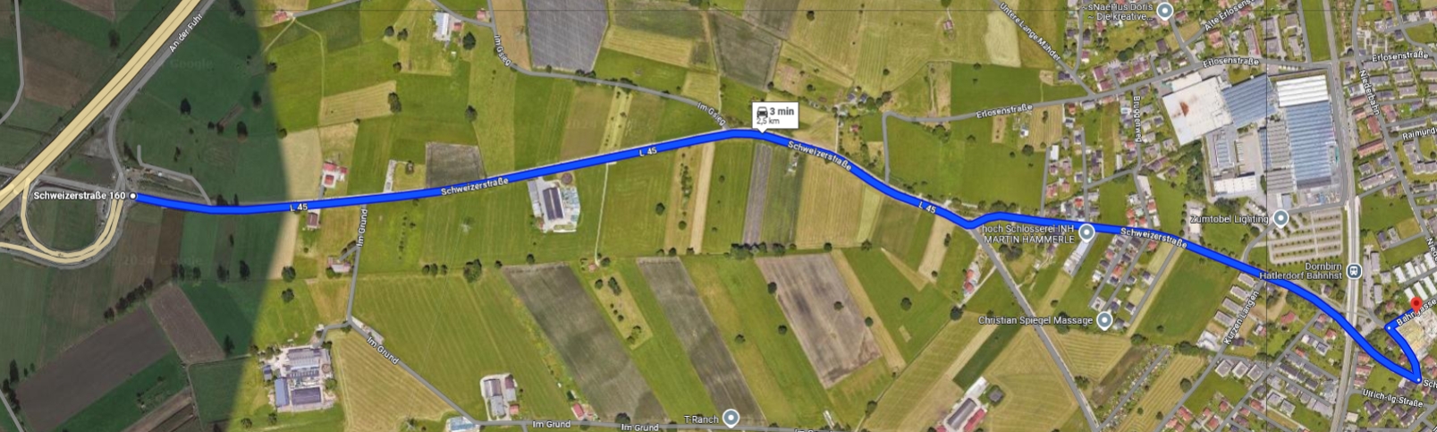 Die Autobahnabfahrt Dornbirn Süd ist mit dem Auto 3 Minuten, bei 2,5 km, entfernt.